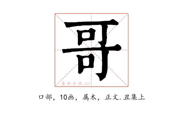 〔哥〕字收录于《康熙字典》正文・丑集上,康熙部首是口部。