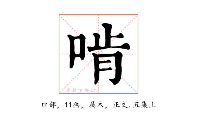 〔啃〕字收录于《康熙字典》正文・丑集上,康熙部首是口部。