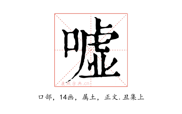 〔嘘〕字收录于《康熙字典》正文・丑集上,康熙部首是口部。