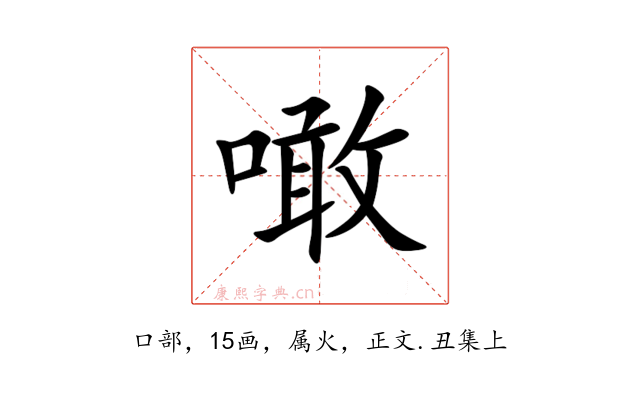 〔噉〕字收录于《康熙字典》正文・丑集上,康熙部首是口部。