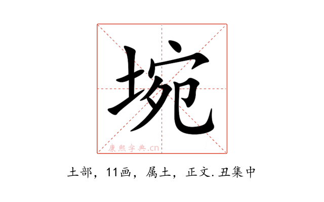 〔埦〕字收录于《康熙字典》正文・丑集中,康熙部首是土部。
