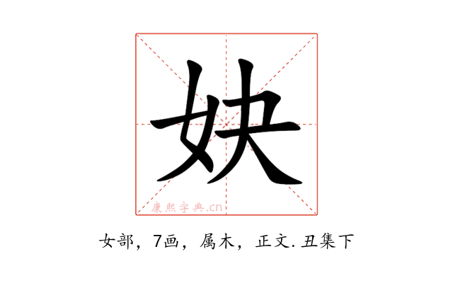 〔妜〕字收录于《康熙字典》正文・丑集下,康熙部首是女部。
