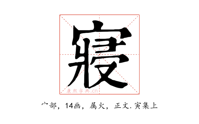 〔寢〕字收录于《康熙字典》正文・寅集上,康熙部首是宀部。