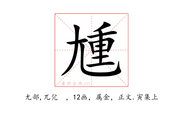 〔尰〕字收录于《康熙字典》正文・寅集上,康熙部首是尢部。