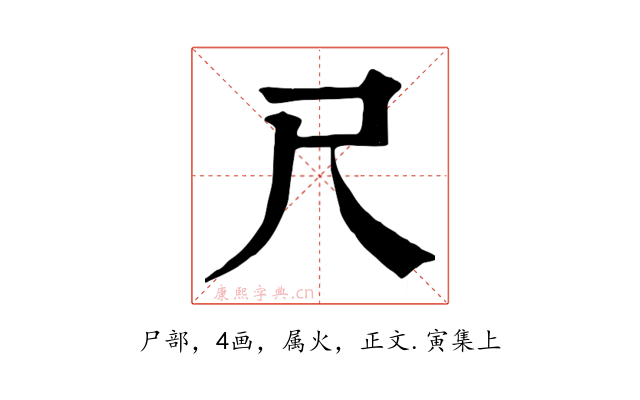 〔尺〕字收录于《康熙字典》正文・寅集上,康熙部首是尸部。