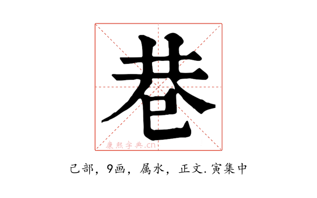 〔巷〕字收录于《康熙字典》正文・寅集中,康熙部首是己部。