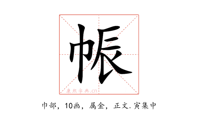 〔帪〕字收录于《康熙字典》正文・寅集中,康熙部首是巾部。