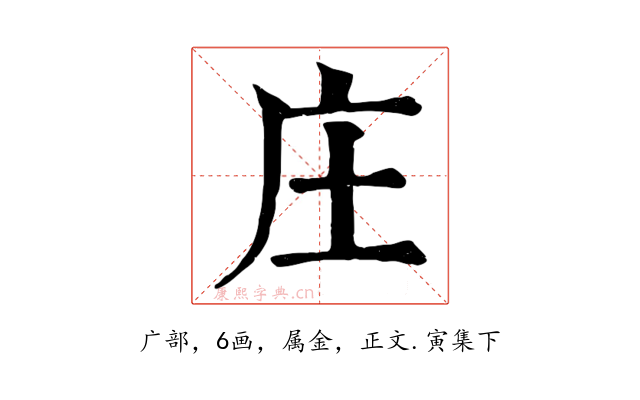 〔庄〕字收录于《康熙字典》正文・寅集下,康熙部首是广部。