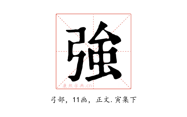 〔強〕字收录于《康熙字典》正文・寅集下,康熙部首是弓部。