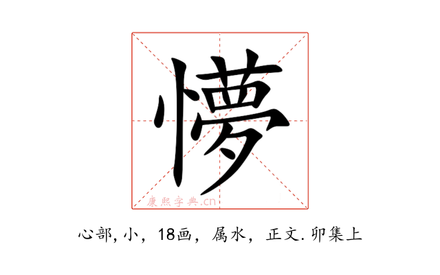 〔懜〕字收录于《康熙字典》正文・卯集上,康熙部首是心部。