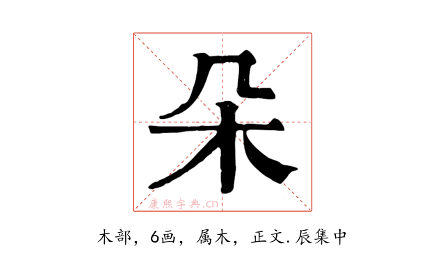 〔朵〕字收录于《康熙字典》正文・辰集中,康熙部首是木部。