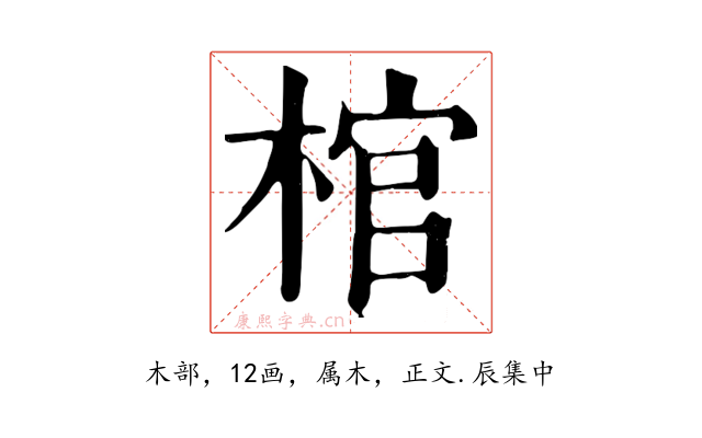 〔棺〕字收录于《康熙字典》正文・辰集中,康熙部首是木部。