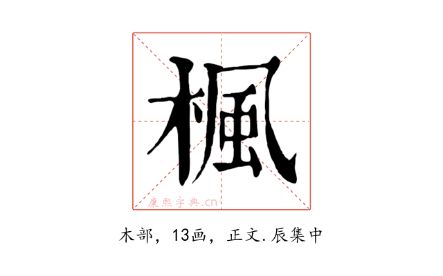 〔楓〕字收录于《康熙字典》正文・辰集中,康熙部首是木部。