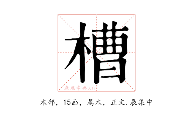 〔槽〕字收录于《康熙字典》正文・辰集中,康熙部首是木部。