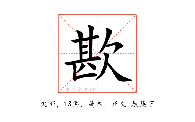 〔歁〕字收录于《康熙字典》正文・辰集下,康熙部首是欠部。