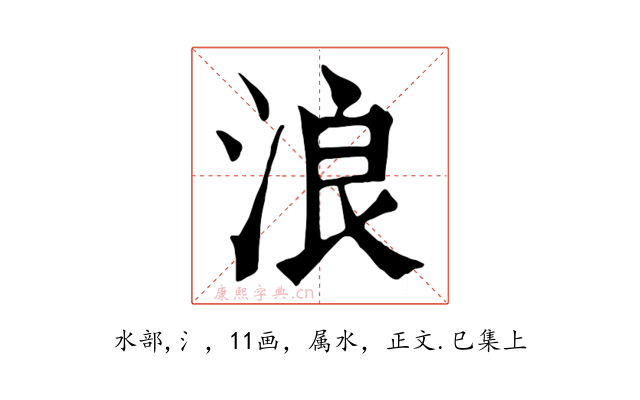 〔浪〕字收录于《康熙字典》正文・巳集上,康熙部首是水部。