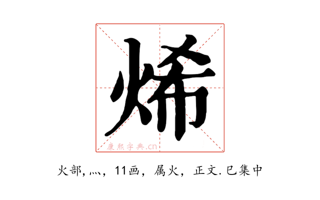 〔烯〕字收录于《康熙字典》正文・巳集中,康熙部首是火部。