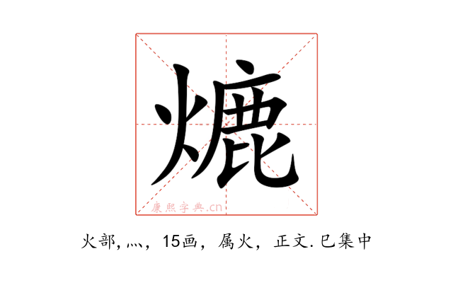 〔熝〕字收录于《康熙字典》正文・巳集中,康熙部首是火部。
