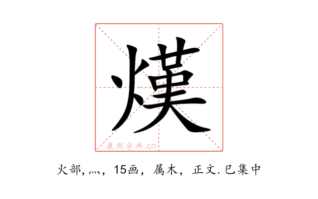 〔熯〕字收录于《康熙字典》正文・巳集中,康熙部首是火部。