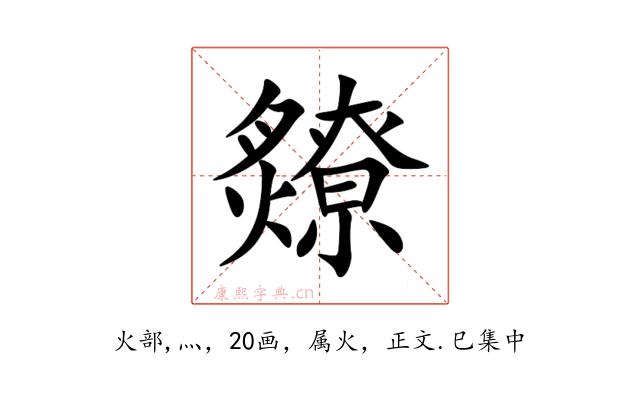 〔爒〕字收录于《康熙字典》正文・巳集中,康熙部首是火部。