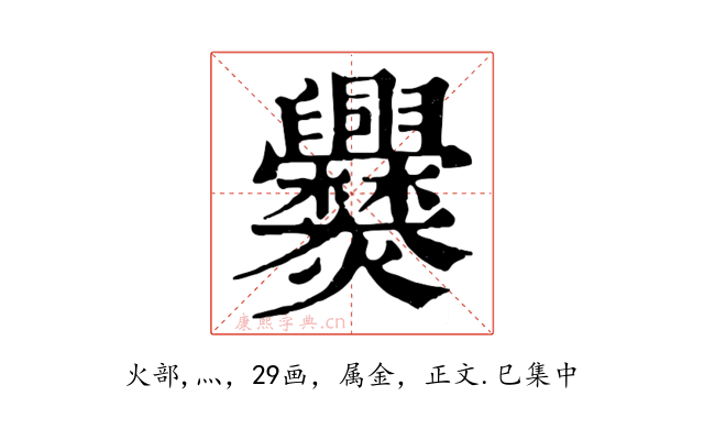 〔爨〕字收录于《康熙字典》正文・巳集中,康熙部首是火部。