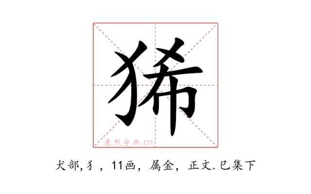 〔狶〕字收录于《康熙字典》正文・巳集下,康熙部首是犬部。