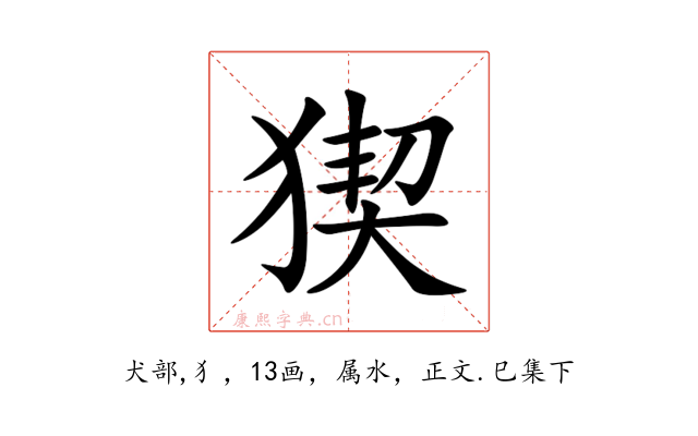 〔猰〕字收录于《康熙字典》正文・巳集下,康熙部首是犬部。