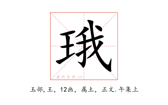 〔珴〕字收录于《康熙字典》正文・午集上,康熙部首是玉部。