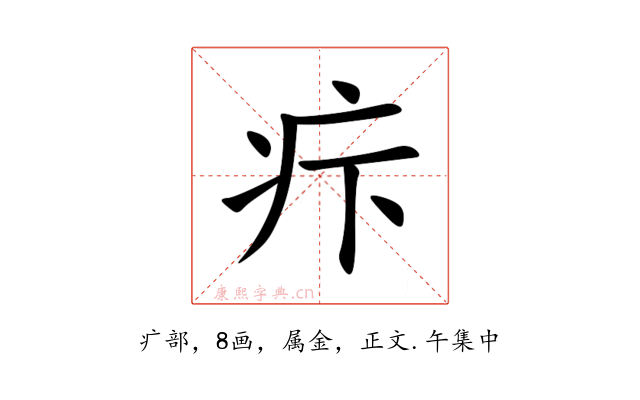 〔疜〕字收录于《康熙字典》正文・午集中,康熙部首是疒部。