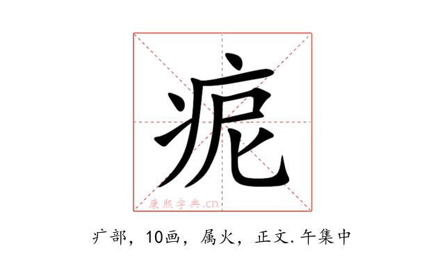 〔痆〕字收录于《康熙字典》正文・午集中,康熙部首是疒部。