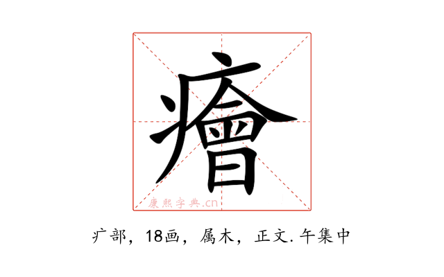 〔癐〕字收录于《康熙字典》正文・午集中,康熙部首是疒部。