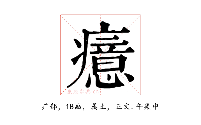 〔癔〕字收录于《康熙字典》正文・午集中,康熙部首是疒部。