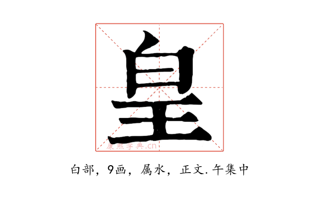 〔皇〕字收录于《康熙字典》正文・午集中,康熙部首是白部。