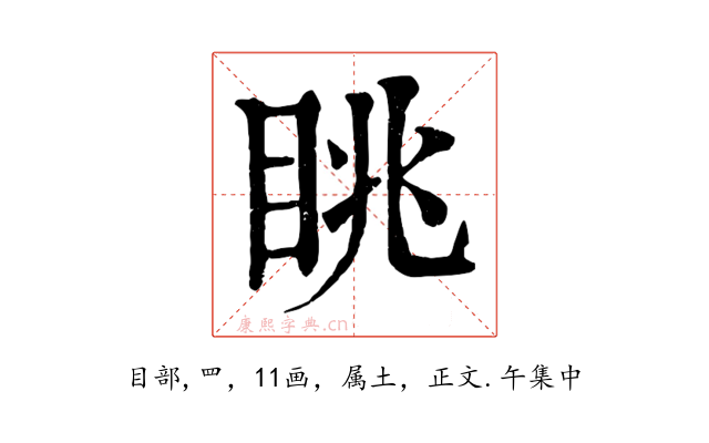〔眺〕字收录于《康熙字典》正文・午集中,康熙部首是目部。