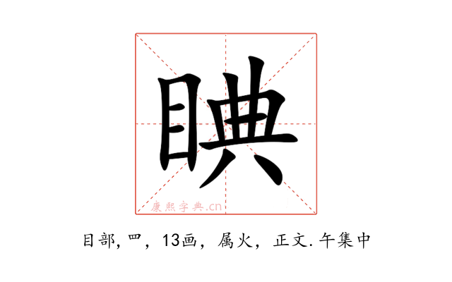 〔睓〕字收录于《康熙字典》正文・午集中,康熙部首是目部。