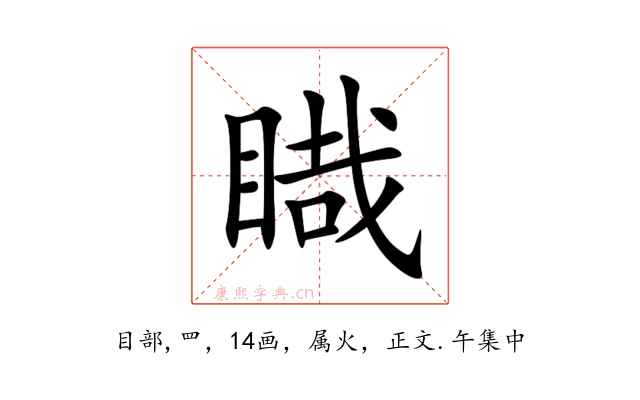 〔睵〕字收录于《康熙字典》正文・午集中,康熙部首是目部。