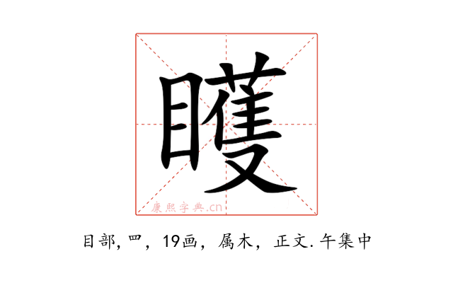 〔矆〕字收录于《康熙字典》正文・午集中,康熙部首是目部。