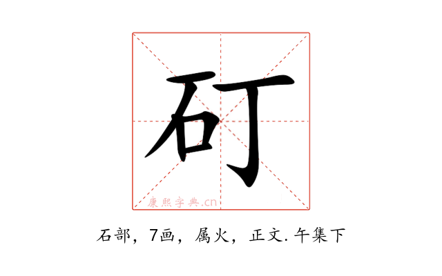 〔矴〕字收录于《康熙字典》正文・午集下,康熙部首是石部。