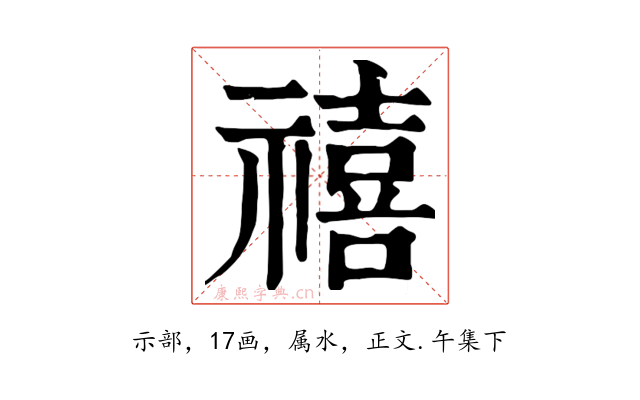 〔禧〕字收录于《康熙字典》正文・午集下,康熙部首是示部。
