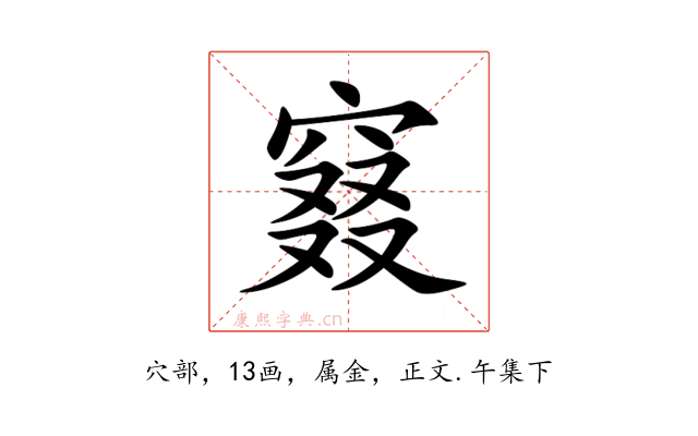 〔窡〕字收录于《康熙字典》正文・午集下,康熙部首是穴部。
