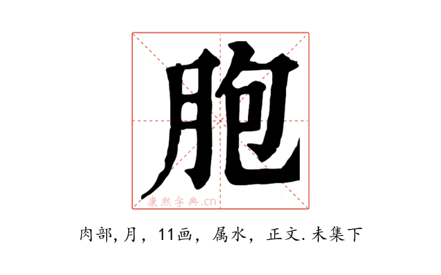 〔胞〕字收录于《康熙字典》正文・未集下,康熙部首是肉部。