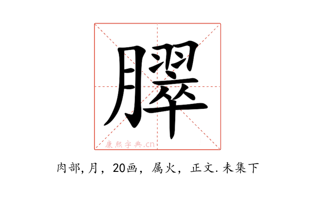 〔臎〕字收录于《康熙字典》正文・未集下,康熙部首是肉部。