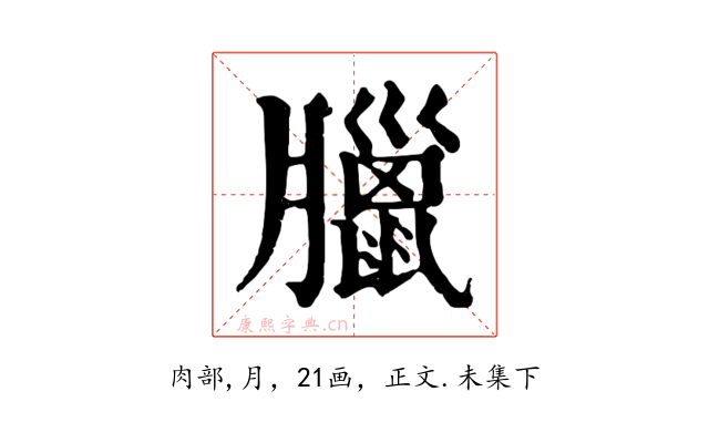 〔臘〕字收录于《康熙字典》正文・未集下,康熙部首是肉部