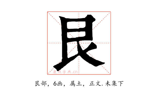 〔艮〕字收录于《康熙字典》正文・未集下,康熙部首是艮部。