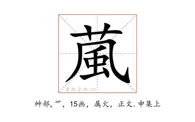 〔葻〕字拼音是lán,上下结构,可拆字为艹、風。