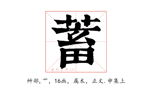 〔蓄〕字收录于《康熙字典》正文・申集上,康熙部首是艸部。