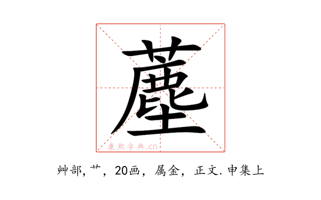 〔薼〕字收录于《康熙字典》正文・申集上,康熙部首是艸部。