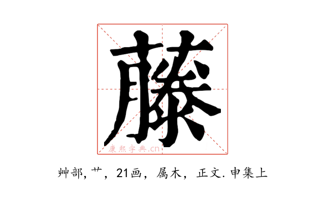 〔藤〕字收录于《康熙字典》正文・申集上,康熙部首是艸部。