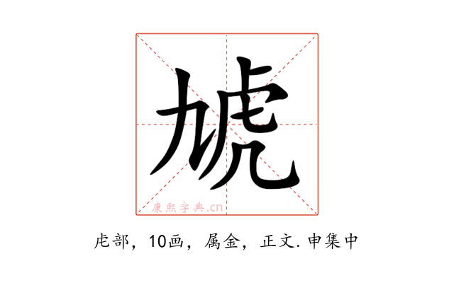 〔虓〕字收录于《康熙字典》正文・申集中,康熙部首是虍部。