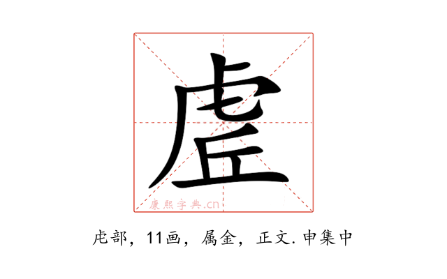 〔虗〕字收录于《康熙字典》正文・申集中,康熙部首是虍部。